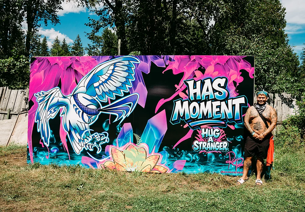 "As the selected Indigenous artist for Shambhala Music Festival, I truly had a great experience. The team made the installation easy with their ongoing support throughout the process (even post festival). I was so happy to see my artwork by the Living Room entrance and seeing people experience the mural and hugging in front of it. I feel like if anyone has a chance to apply to be a part of the farmily in this capacity - do it! It is such a cool way to experience and be a part of the festival in a different way."