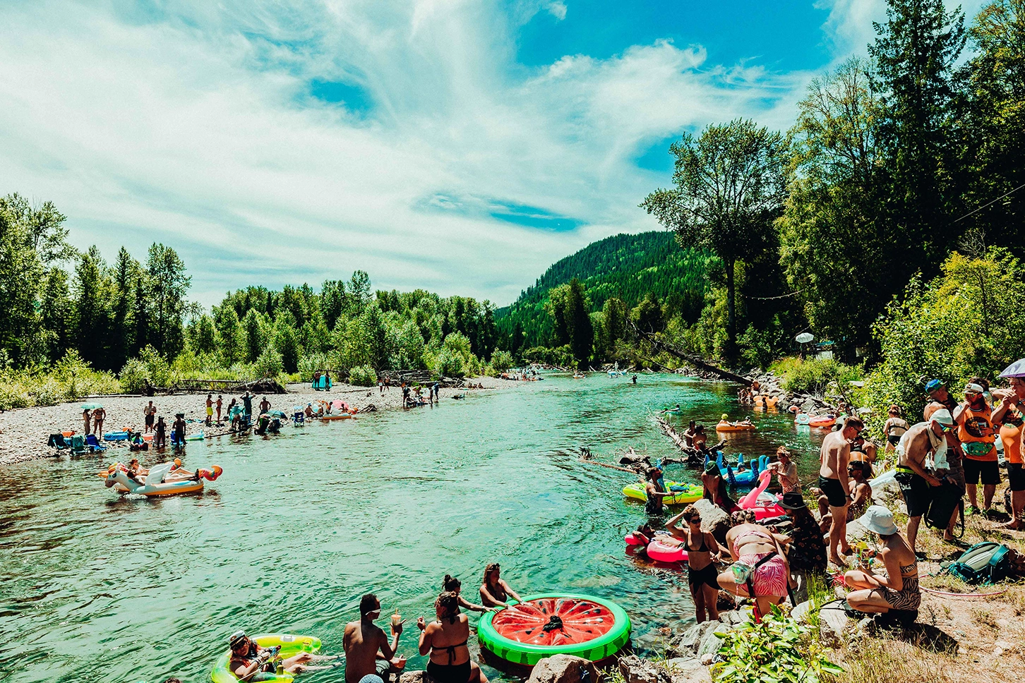 If you need a break from dancing and exploring the farm, we invite our guests to experience the magic of the pristine Salmo River. Take a dip and cool off, hang out in a floatie and make new friends on the shore of the river, all with the Living Room Stage providing great tunes in the background.